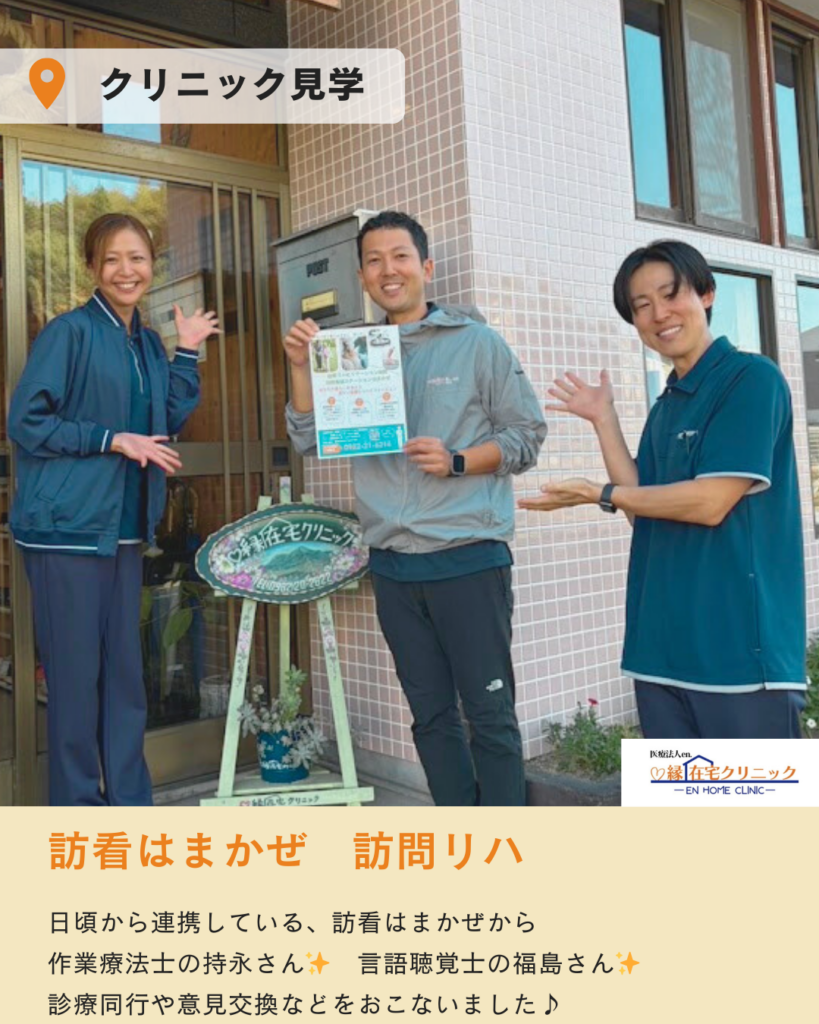 先日、「訪問看護ステーションはまかぜ」の作業療法士・持永さんと、言語聴覚士・福島さんが当院の見学に来てくださいました。